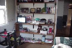 ...and a large bookcase attached to the wall. Perfect spot for any computer-geek manuals, sports books, and (of course) the little TV.