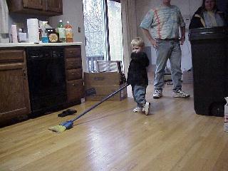 Ben (our 2-year-old nephew) decided he wanted to help, so he picked up a broom and started on the kitchen.